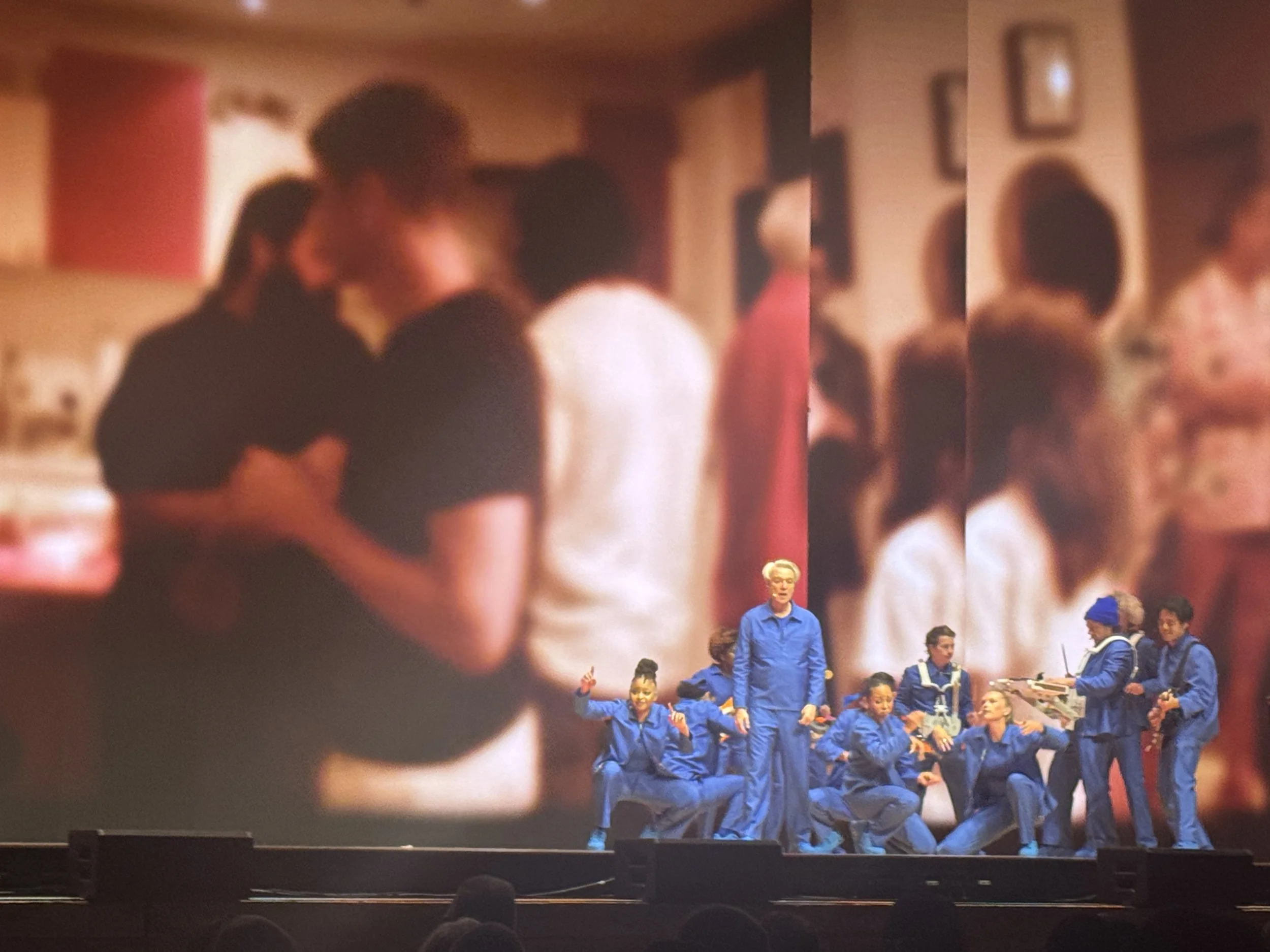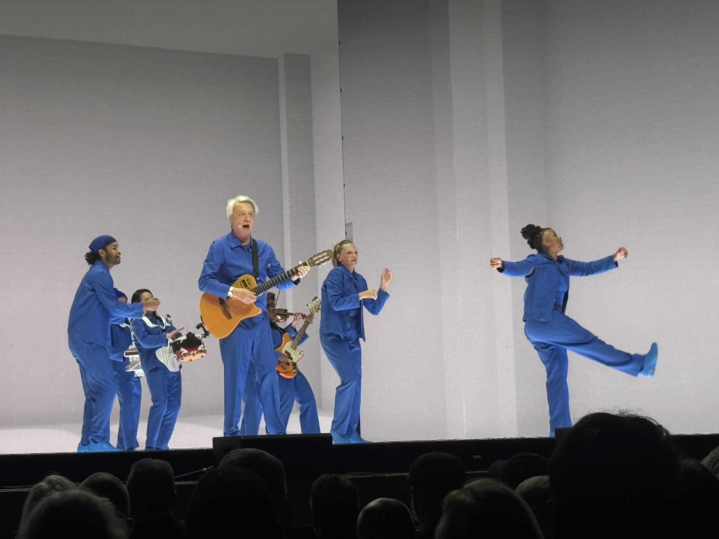 For me, the calmness in Byrne's voice and the subtle nature of the troop's dance moves, harkened a likeness to being in Fred Rogers neighborhood. This time, Neighborhood Trolly transported us to Mr. Byrne's Land of Make-Believe. Timelapse images of NYC rooftops, a voyeuristic glimpse at the inside of his apartment, and learning band members' names by tracking their dance moves eased us into an experience that lingered, leaving me with a sense of wonder and connection.