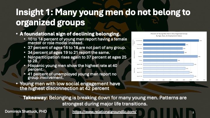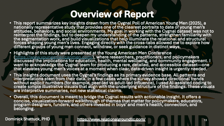 Using the Cygnal Poll of American Young Men (2025), this report summarizes core patterns shaping how young men connect, disconnect, seek guidance, and navigate belonging.
