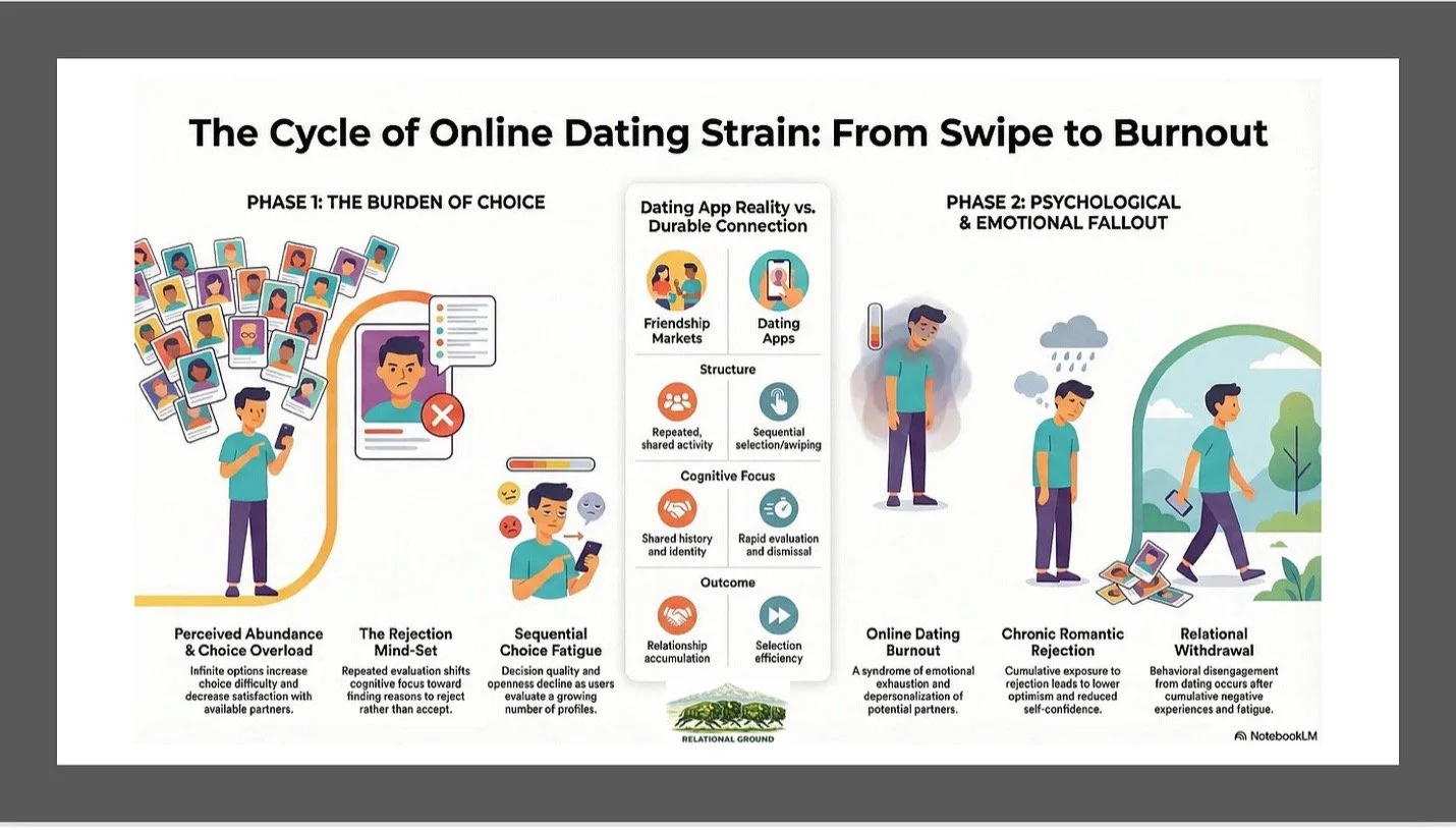 “Burnout in online dating mirrors occupational burnout and consists of emotional exhaustion, depersonalization of dating partners, and reduced feelings of accomplishment or efficacy in forming relationships.” Balassanian, N. (2025).